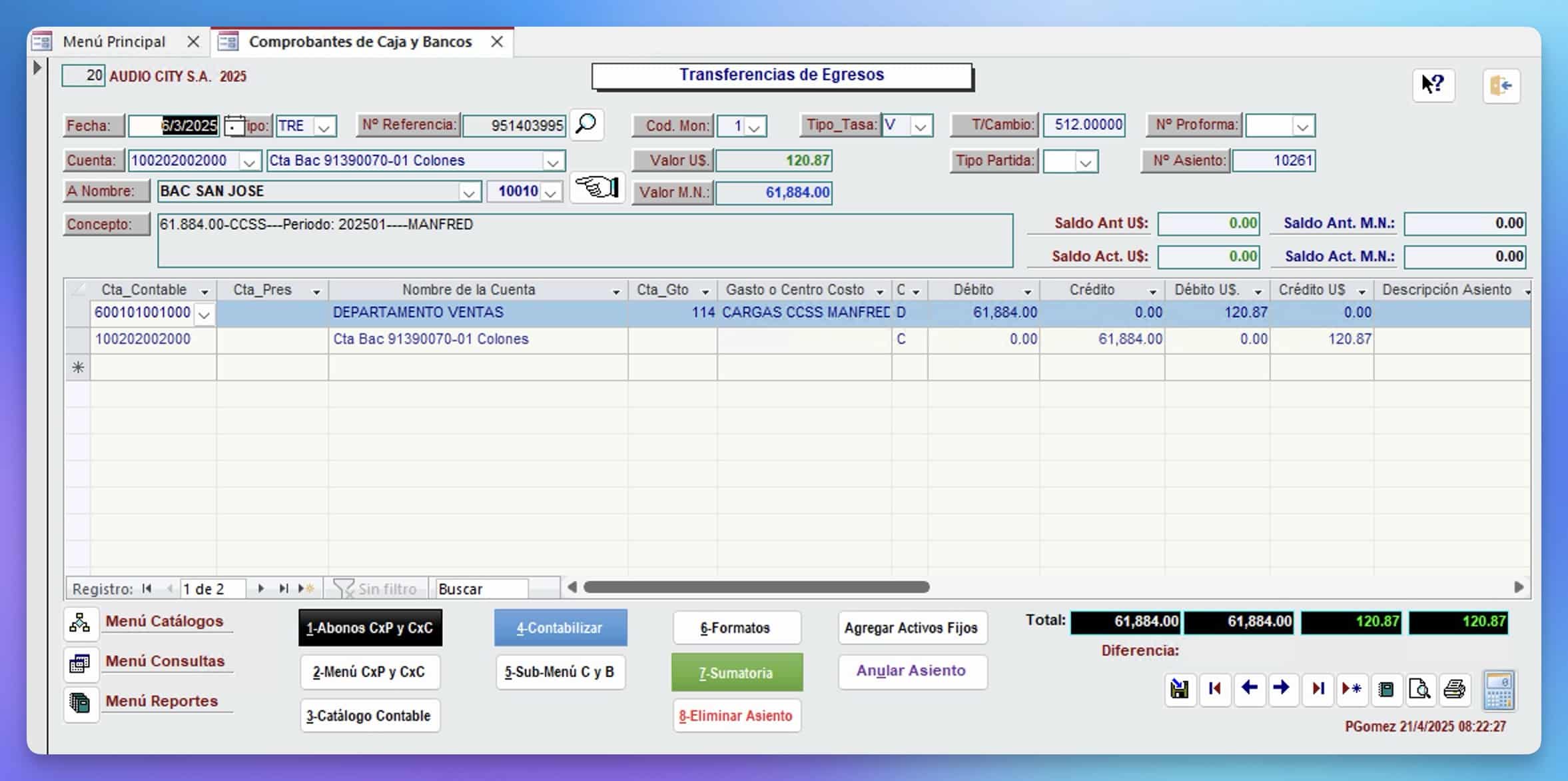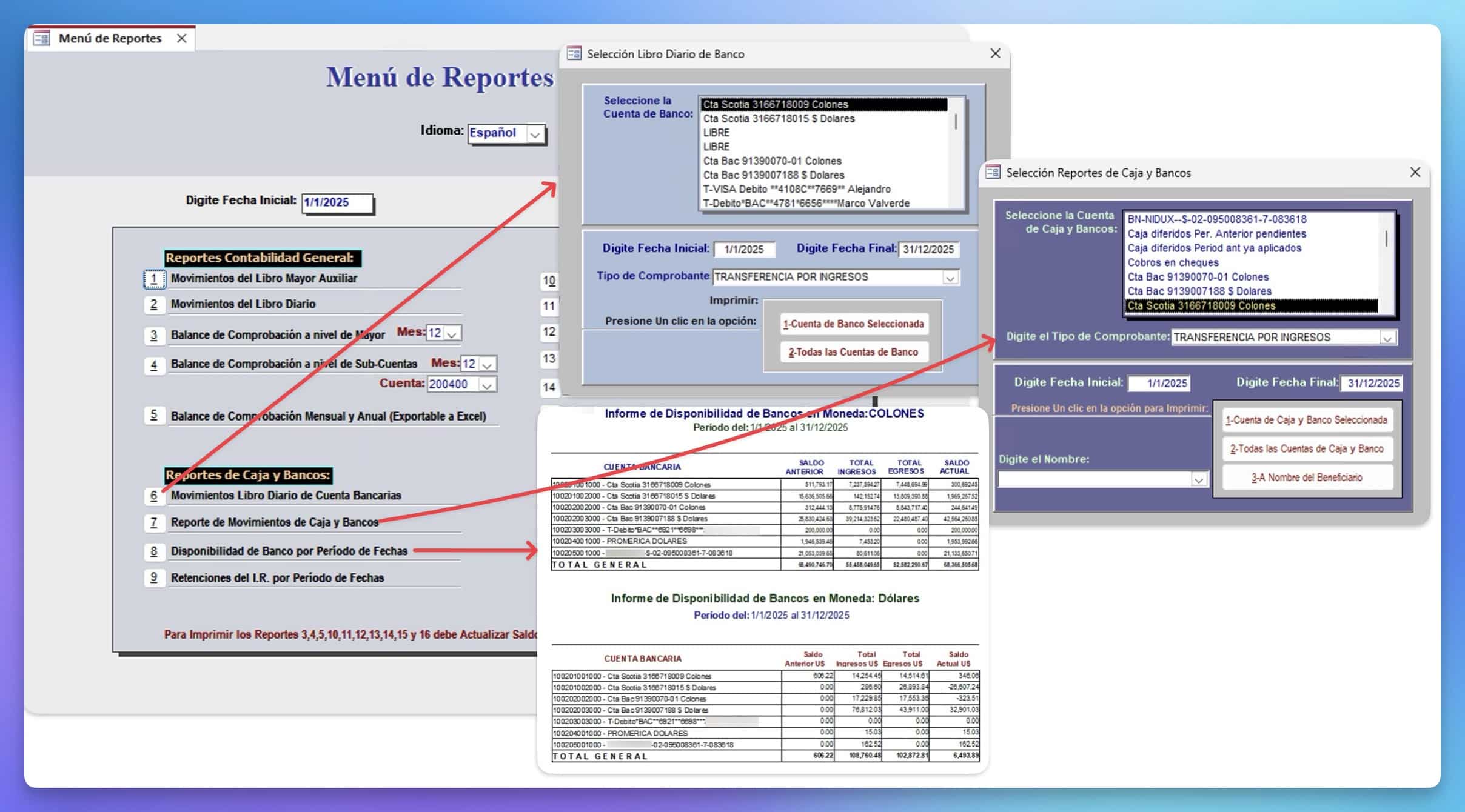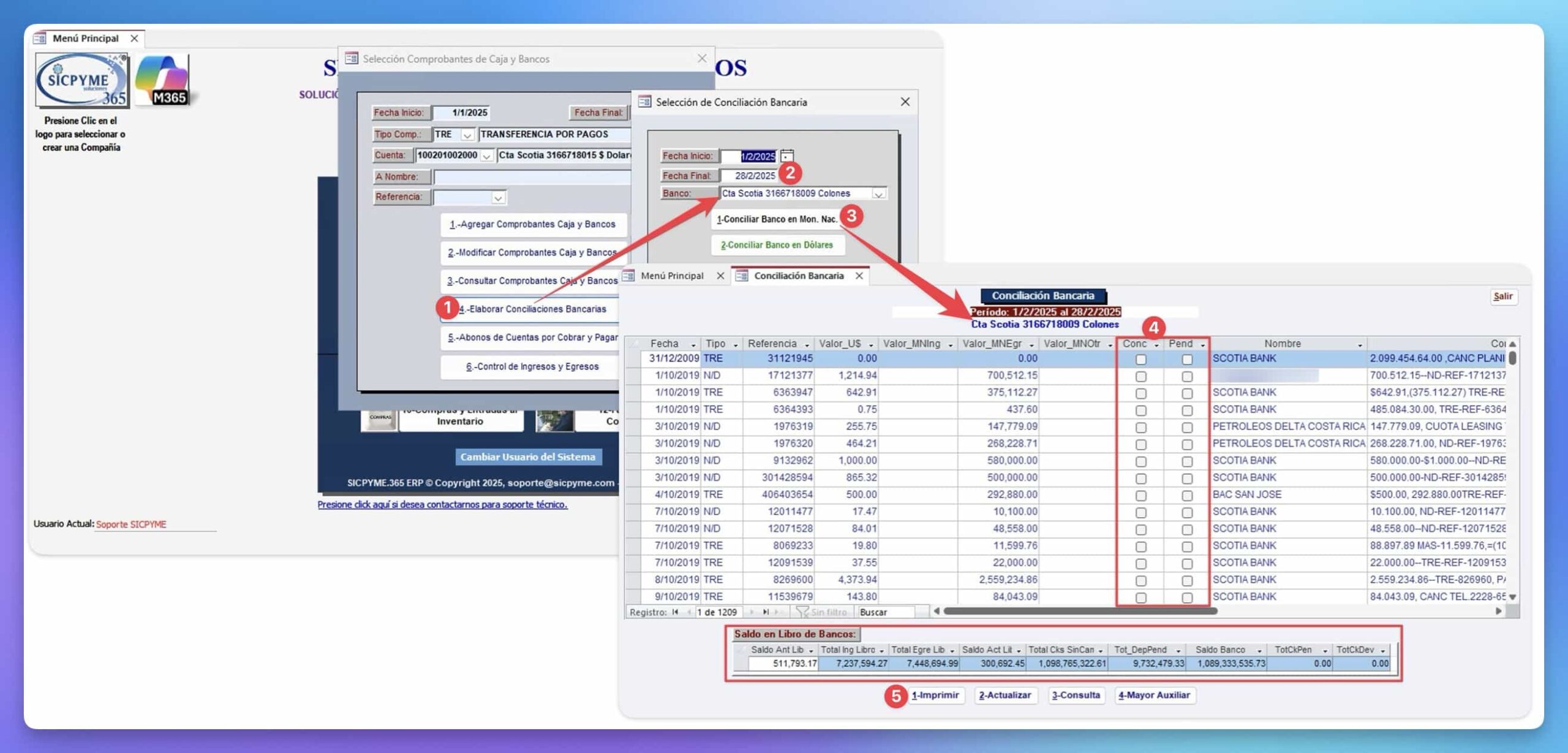 Conciliaciones Bancarias en moneda local y extranjera