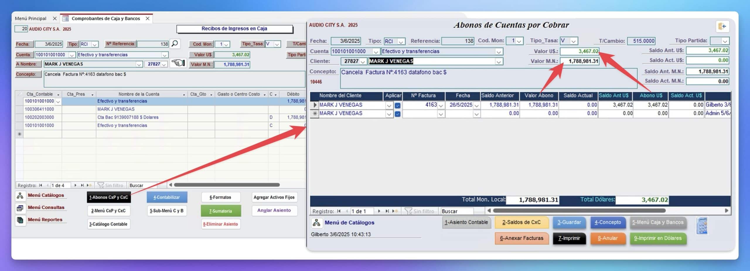 Abonos de Cuentas por Cobrar y Ventas de Contado.