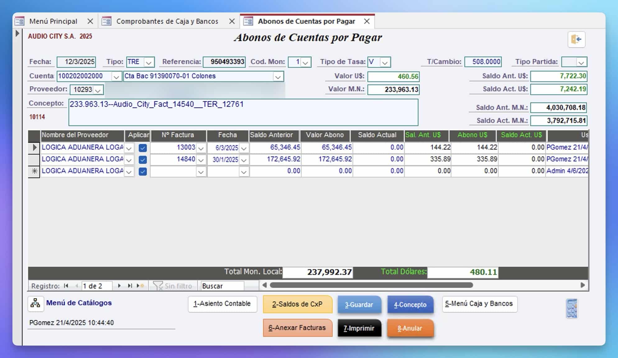 Manejo eficiente de pagos y abonos a Cuentas por Pagar